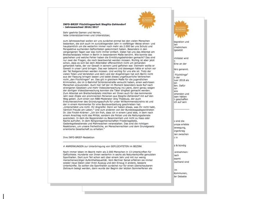 Das Willkommensbündnis für Flüchtlinge in Steglitz-Zehlendorf ist parteipolitisch unabhängig und nicht konfessionsgebunden.